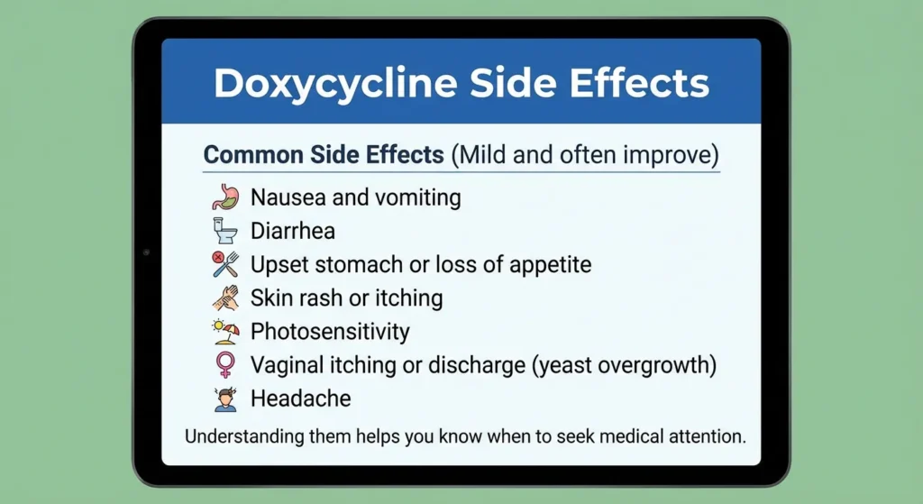 Like all antibiotic medications, doxycycline can cause side effects. Understanding them helps you know when to seek medical attention.